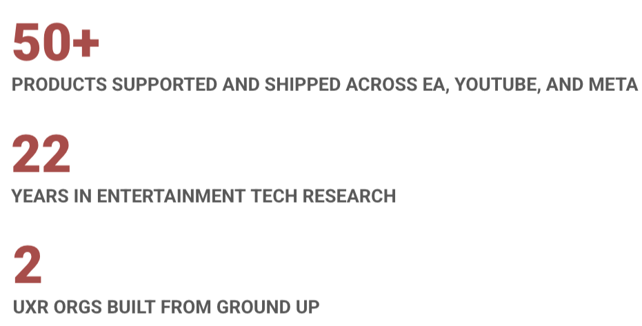 My career has centered on entertainment tech — building research orgs, establishing protocols, and generating insights that dev teams can actually use to make better products and increase their revenue.