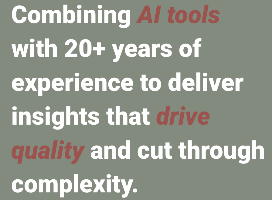 Strong qualitative skills paired with survey design and analysis, while also leveraging AI for insights that interpret leaders’ thoughts and concerns to inform confident decisions.